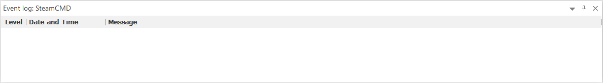 | Event Log Monitor | Opens the Event Log Monitor at the bottom of the panel.![]() The event log tracks the Level, Date and Time, and Message of anything logged. Event log(s) can be pinned for monitoring to the main panel. The down arrow to the left of the pin offers different display methods for the event log
